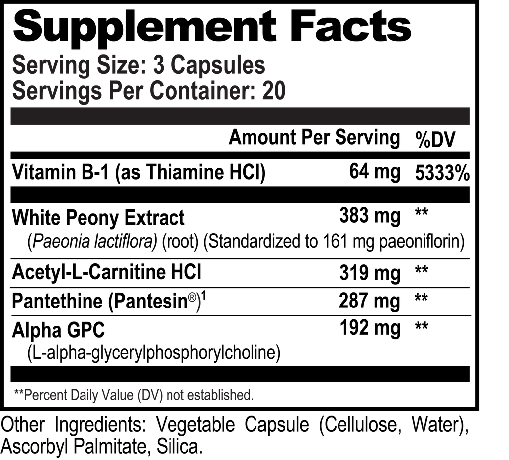Acetylcholine Brain Food™ is designed to promote the production of acetylcholine, a neurotransmitter essential to mental processing. Research suggests that the natural compounds in Acetylcholine Brain Food™ are associated with memory and cognitive function.