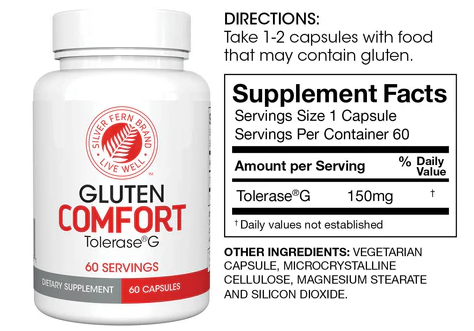 Gluten Comfort by Silver Fern™ Brand is a targeted enzyme product that contains a dietary enzyme that helps to break down gluten in the stomach.*