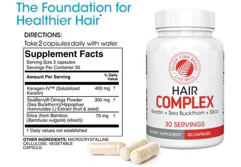Hair Complex combines the powers of solubilized keratin, sea buckthorn, and bamboo to help give you healthier hair.* With digestible structural proteins, plant-based omegas, and organic silica, Hair Complex helps lay the foundation for healthier hair with just one vegetarian capsule per day.*