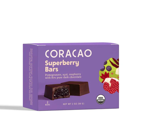 Superberry Bar 2oz - Pomegranate, Acai & Raspberry with 81% Pure Dark Chocolate - Coracao
