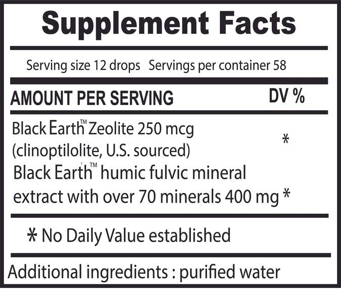 - CONTAINS ZEOLITE- Black Earth Zeolite is in the liquid form to guarantee maximum absorption and assimilation. Zeolite is a potent cleanser that supports deep cellular metabolism and removal of wastes. Zeolite also supports a healthy inflammatory response and healthy intestinal barrier integrity.