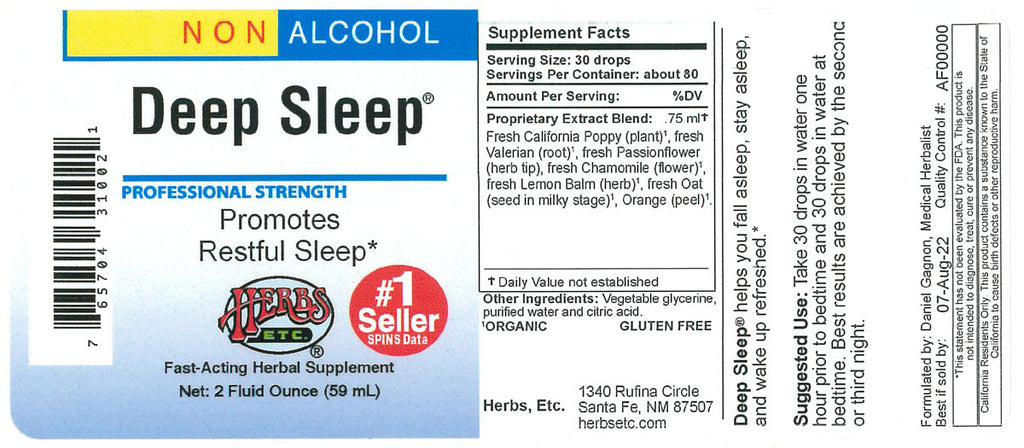Deep Sleep 1 oz - Alcohol Free - Promotes Restful Sleep - Herbs Etc