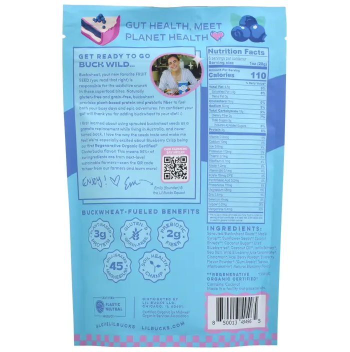 Gut Friendly Buckwheat Granola 6oz - Grain Free Blueberry Crisp with Acai Berry - Lil Bucks