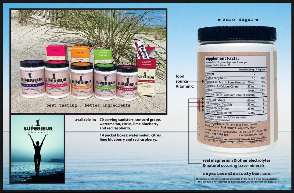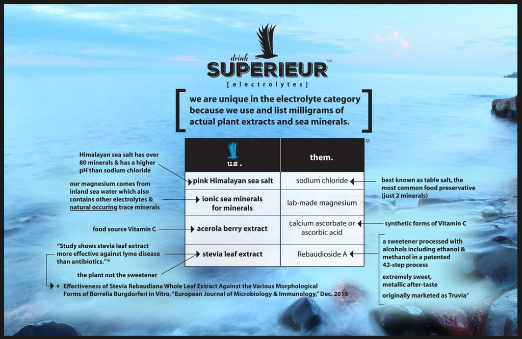 Superieur Electrolytes is a light, refreshing electrolyte drink. We use it before, during and after activity, & anytime we are thirsty & want more than plain water.