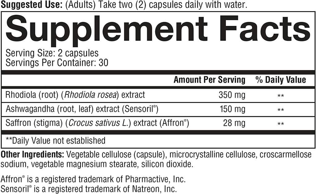 Youtheory Saffron is a multi-faceted formulation that is synergistically designed to support mood and emotional well-being.* This product is ideally suited to individuals with temporary depressed mood, occasional anxiety, stress-related exhaustion or mental fatigue.*