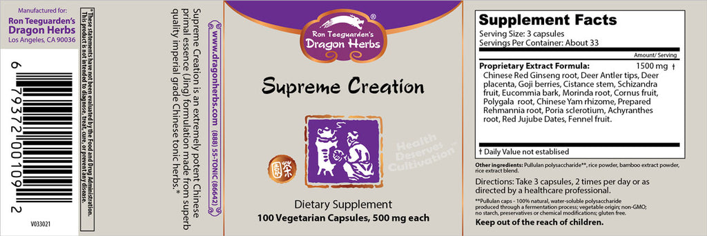 Supreme Creation - 100 vegetarian capsules - Primal Jing Formula - Dragon Herbs