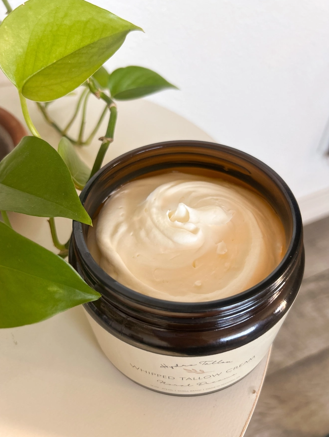 Our Whipped Tallow Cream is a simple yet luxurious blend of locally sourced grass-fed tallow, and cold single-pressed unrefined jojoba oil, designed to deeply moisturize and nourish your skin. This lightweight, whipped formula absorbs effortlessly, leaving your skin feeling soft and smooth.